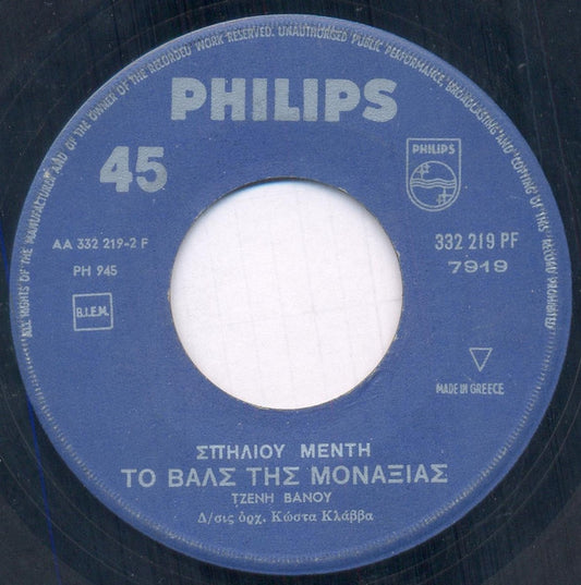 Σπήλιος Μεντής, Τζένη Βάνου – Μπροστά Στην Αγάπη / Το Βαλς Της Μοναξιάς 7" single